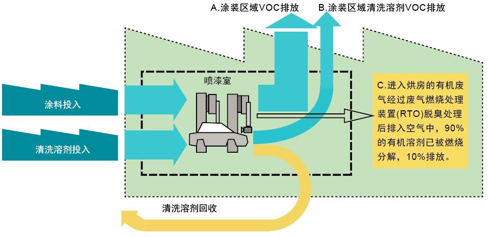 汽車涂裝工藝過程VOCs排放環(huán)節(jié)主要包含:電泳底漆、中涂和面漆的噴涂及烘干過程、塑料件加工的涂漆工序。油漆在噴槍內(nèi)的高壓作用下霧化成微粒,隨氣流彌散至車間內(nèi)外形成的漆霧。 產(chǎn)生有機廢氣地方主要有以下兩點:1、車身烘烤過程中揮發(fā)的有機廢氣。2、噴漆室排出的廢氣。